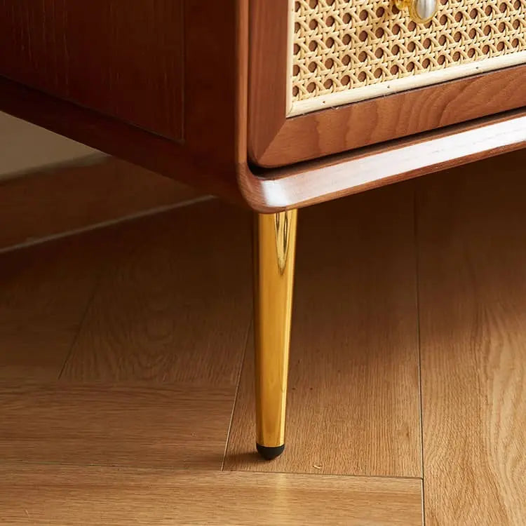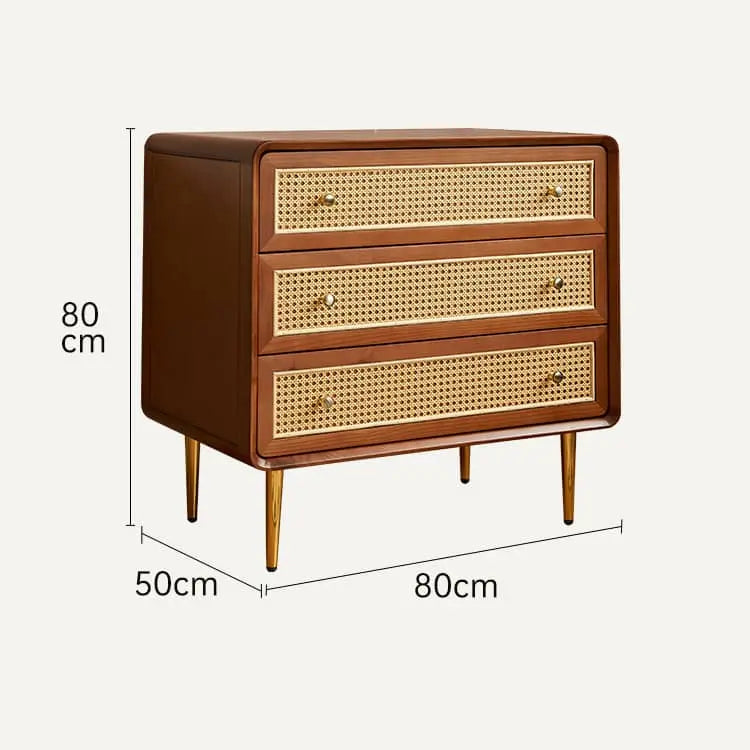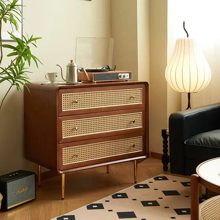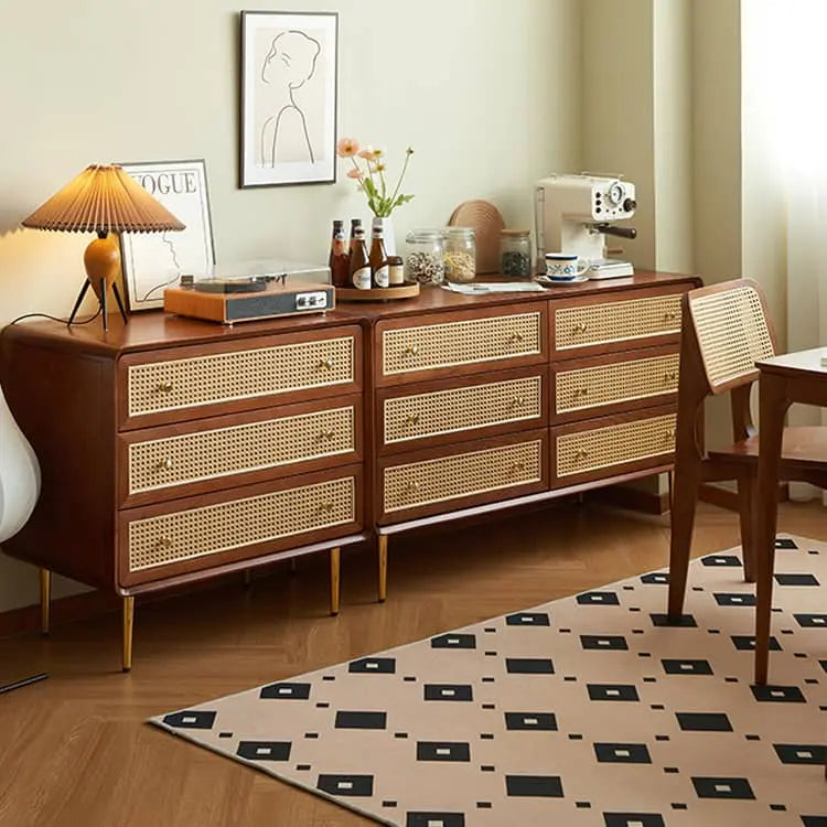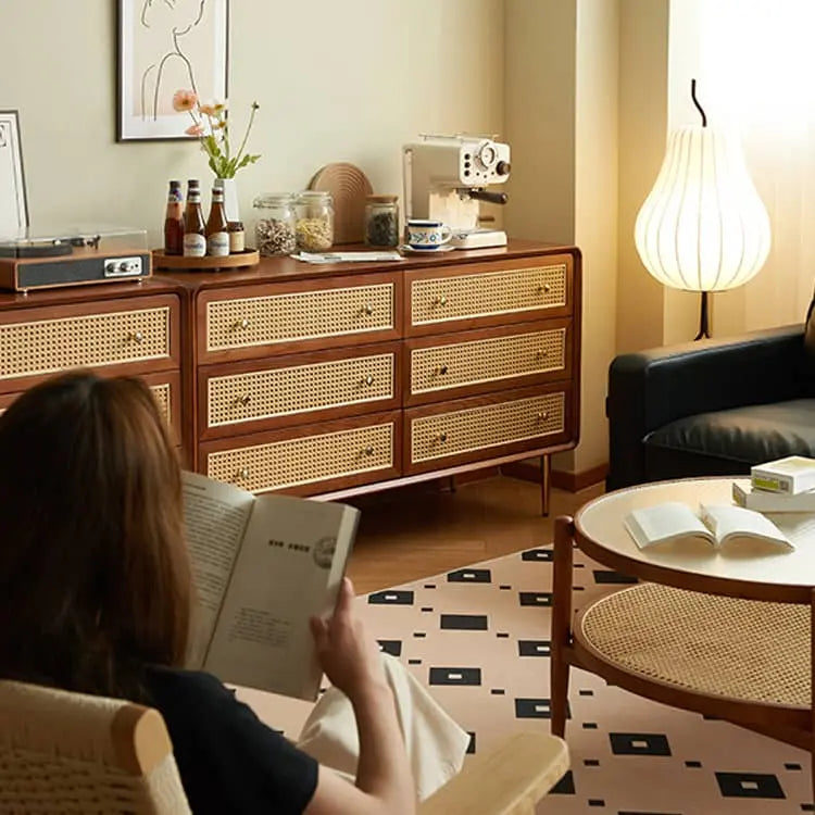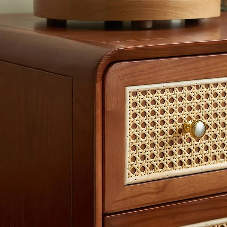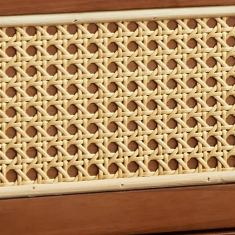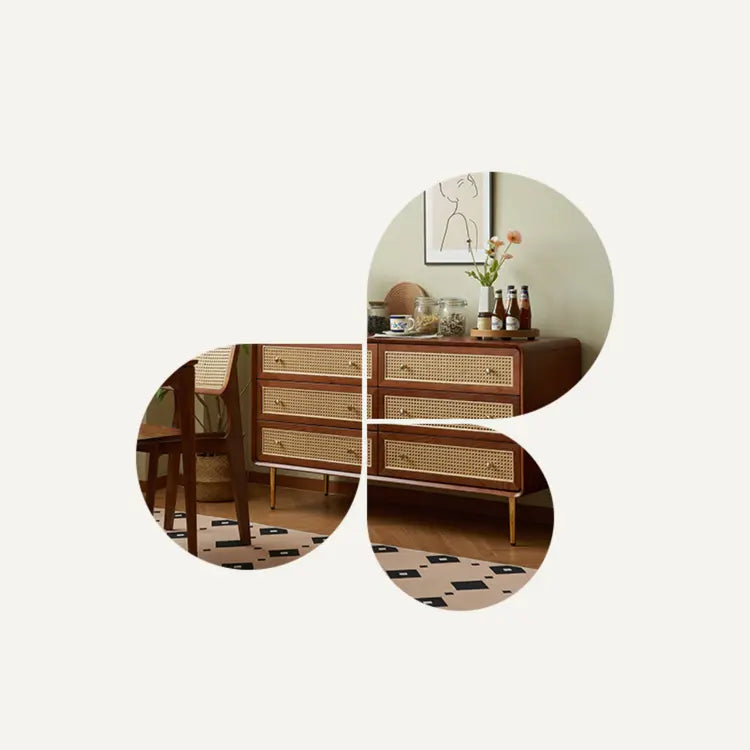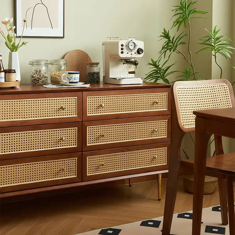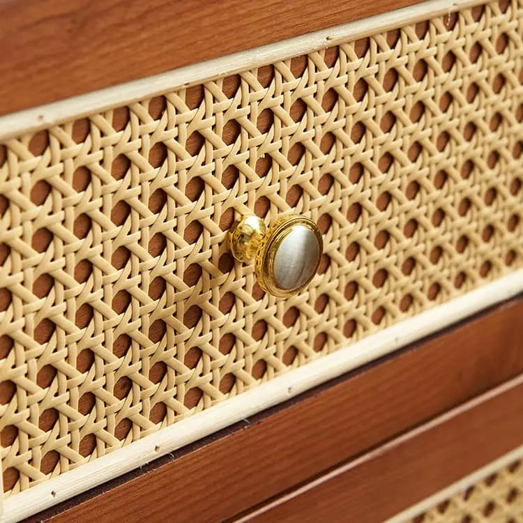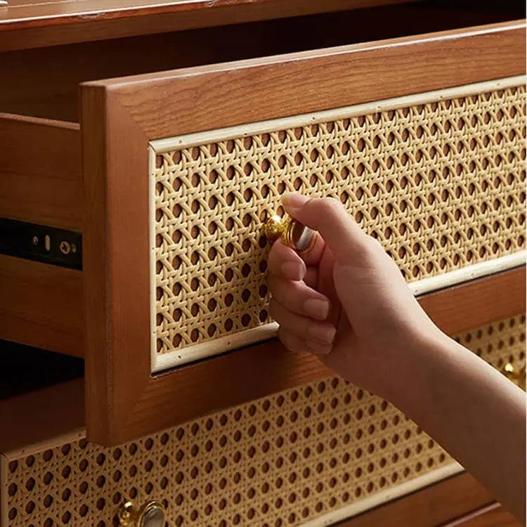 ヴィンテージ風 天然木&ラタン編み 6引き出しチェスト 寝室用 シンプルモダン 小スペース対応収納家具 htb-1749