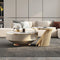 モダンデザインのセラミックセンターテーブル - ステンレスと無垢材の融合 fjx-2678