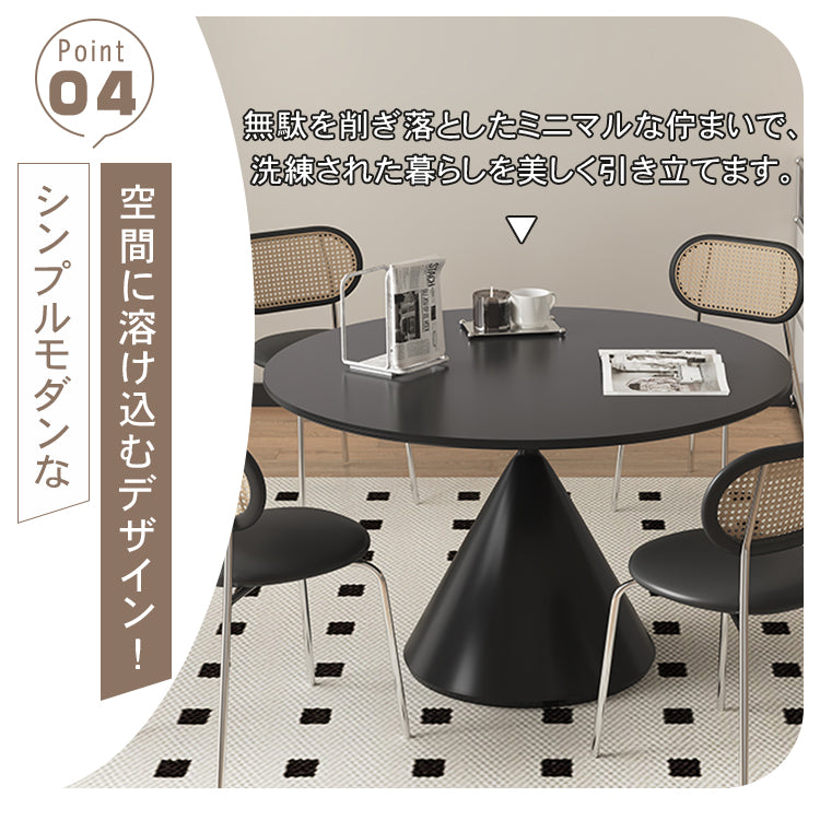 マルチファンクショナル:このテーブルは、食事はもちろん、勉強や作業スペースとしても利用可能な多目的な設計となっています。丸い形状は利用者が向き合って座るのに適しており、会話を楽しみながら食事やコーヒーを楽しむことができます。