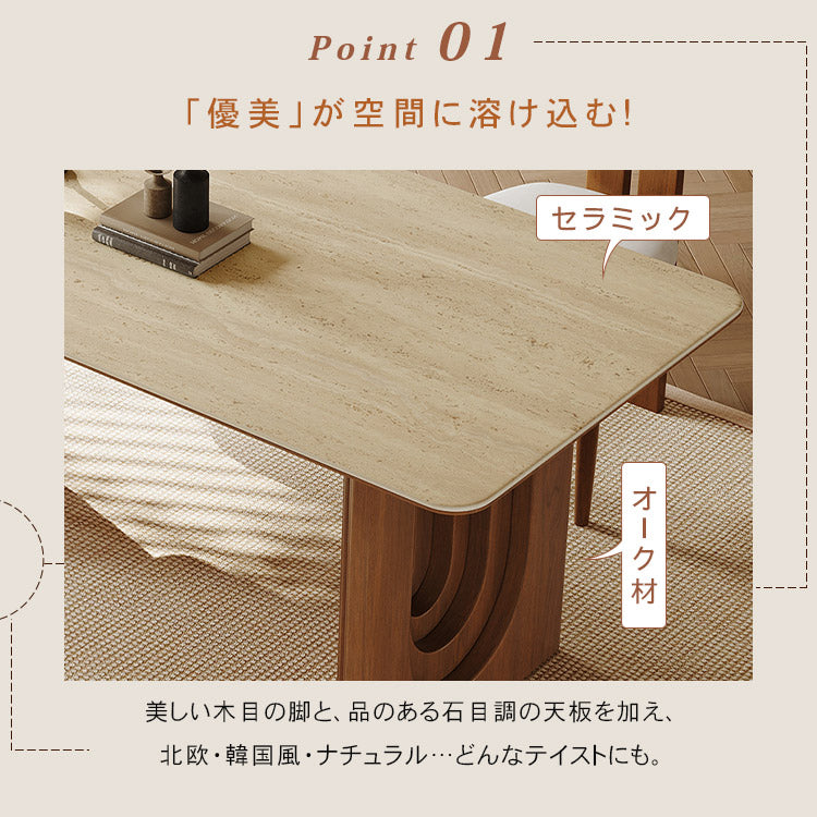 テーブル ベージュ セラミック オーク 多層板 hjj-3643