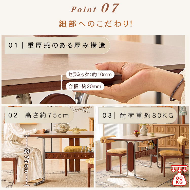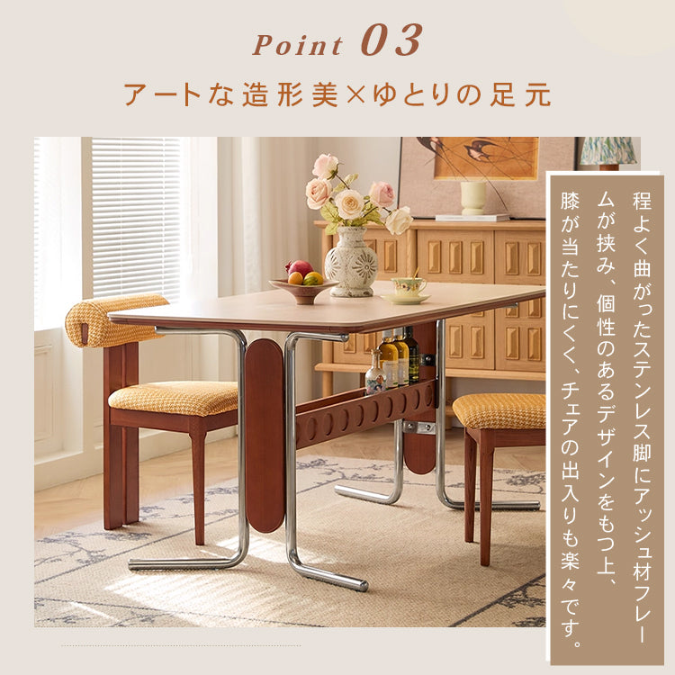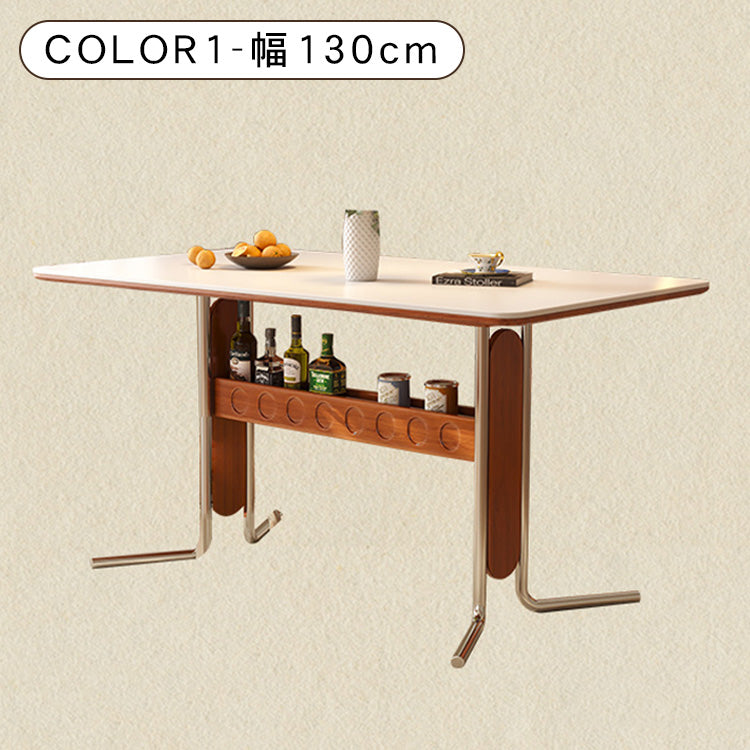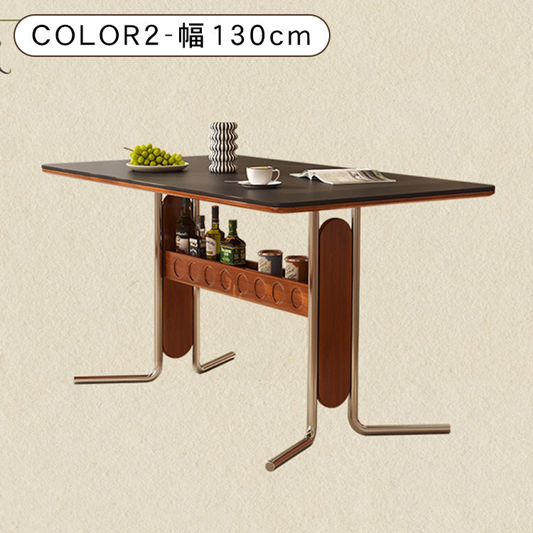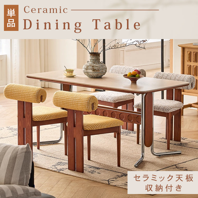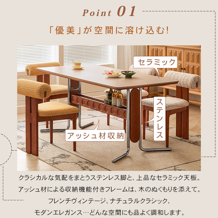 セラミック天板フレンチヴィンテージ長方形実木テーブルステンレス脚 hjj-3648