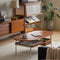 北欧ヴィンテージ無垢材リビングテーブルシンプル楕円形ステンレス脚 hlwy-3684