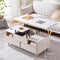 商品特徴 | 多用途デザイン: テーブルの表面が可動式になっており、食事や読書、ノートパソコン作業などさまざまなシチュエーションに合わせて高さを調節できます。これにより、座ったままでも快適に作業が行えるため利便性が高まります。 収納スペース: テーブルの下部に引き出しと開放式の棚が設けられているため、雑誌、リモコン、小物などを整理して収納できます。快適で整理されたリビング空間を保つのに役立ちます。 高級感のあるデザイン: テーブルトップはセラミックのような素材でできており、大理石のような見た目をしています。これにより、室内のインテリアに豊かさと高級感を加えることができます。 耐久性のある素材: 構造部分にオークやパインなどの堅牢な木材が使われており、また多層板や金属の要素も使われているため、長期間にわたって安定した品質を保持することが可能です。 調和の取れた色使い: テーブルのカラーリングは中立的であるため、様々なインテリアスタイルに違和感なく溶け込みます。また、金属のアクセントを使用しているため、スタイリッシュな印象を与えます。 スペースの最適化: サイズがコンパクトでありながら、機能性と収納スペースを確保しているため、限られたスペースでも効率的に使用することができます。 |