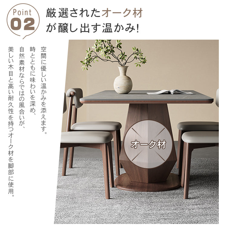 商品特徴 高質な素材:オークは耐久性と美しさで知られている木材です。時間が経過するにつれてより魅力を増し、上品で温かみのある雰囲気をもたらします。多層板は安定性が高く、変形しにくい特性を持っています。セラミックは表面が硬く、傷がつきにくいことから、テーブルトップに適しており、長持ちする仕様になっています。