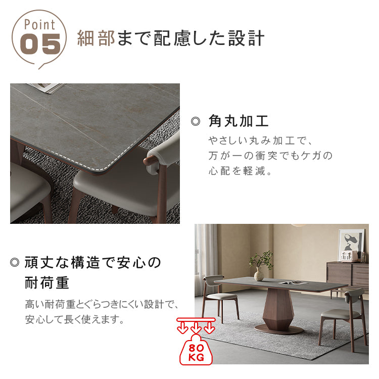 多用途性:広い天板は、食事だけでなく、ワークスペースや趣周のための空間としても活用が可能です。様々なシーンでの使用が想定されるため、家具としての用途が広がります。