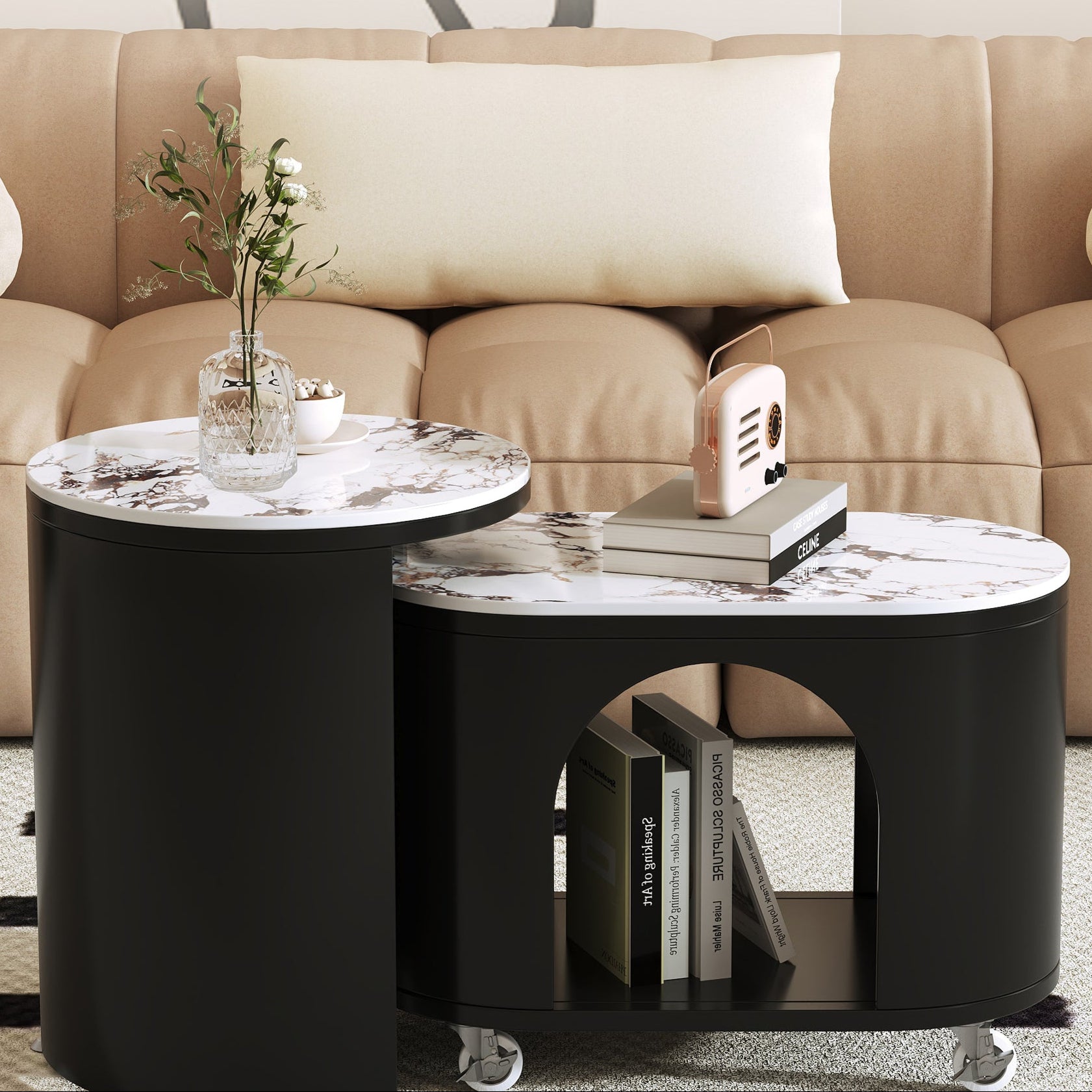 クリーム風ソファサイドテーブル 岩板製 リビング用 移動式 組み合わせ小型コーヒーテーブル モダンシンプル クリエイティブ 家庭用ワゴン hoq-5377