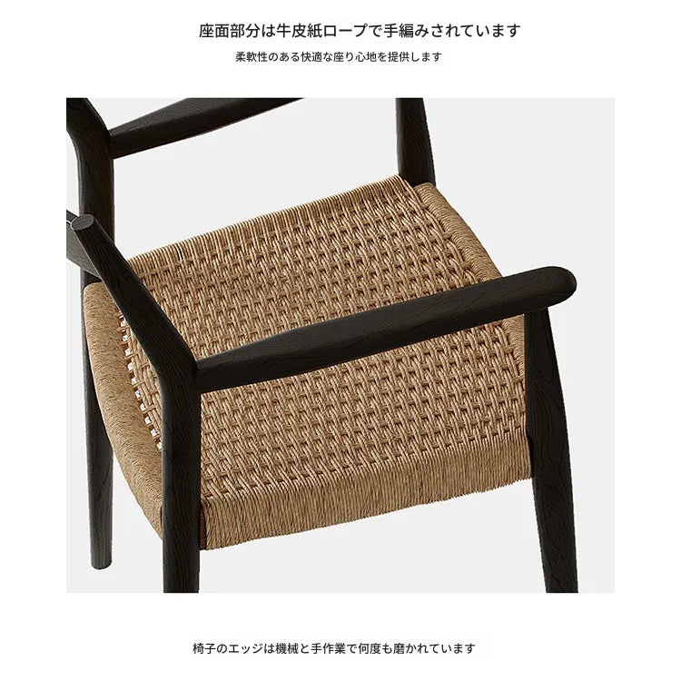 クラフトペーパーロープクッションホワイトアッシュ無垢材ダイニングチェアオフィスチェア hqm-3230-ch