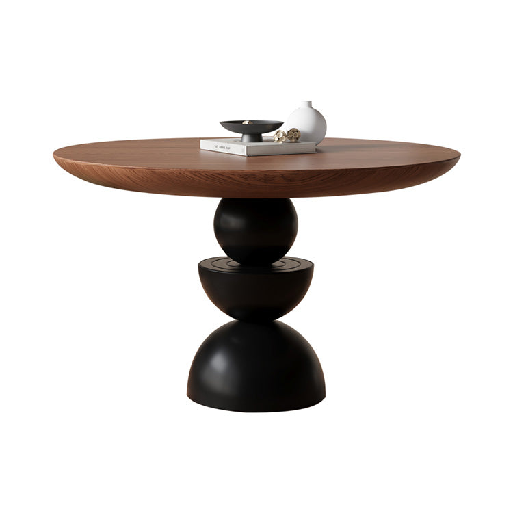 無垢材ラウンドテーブル フレンチヴィンテージ ウォールナット色 小型住宅向け hsgmy-5733