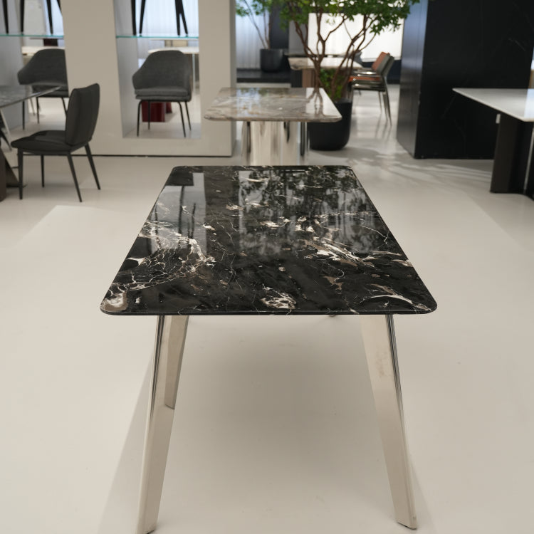 デザイナーズ 大理石ダイニングテーブル ブラック×ホワイト 天然石天板 高級モノトーンインテリア jrjj-6112