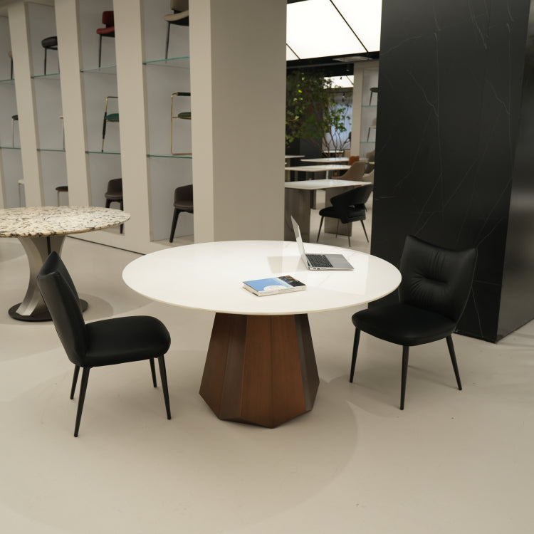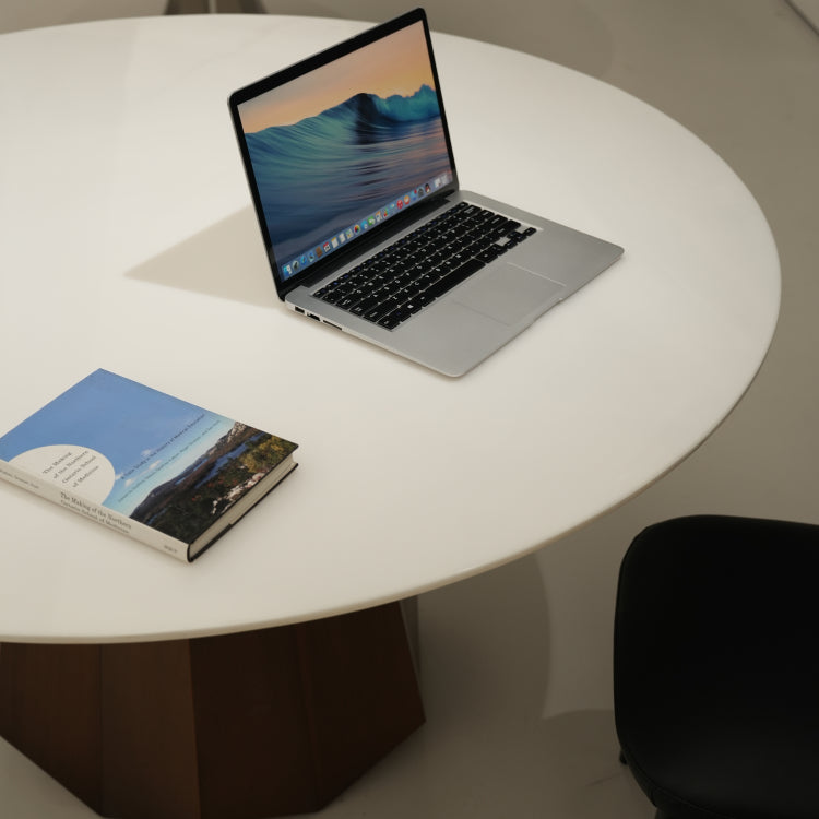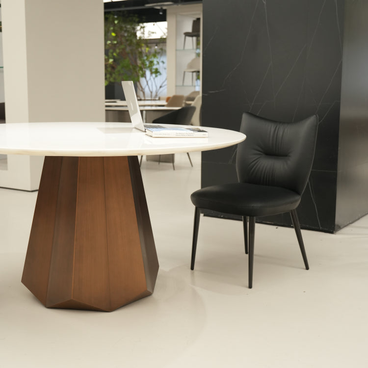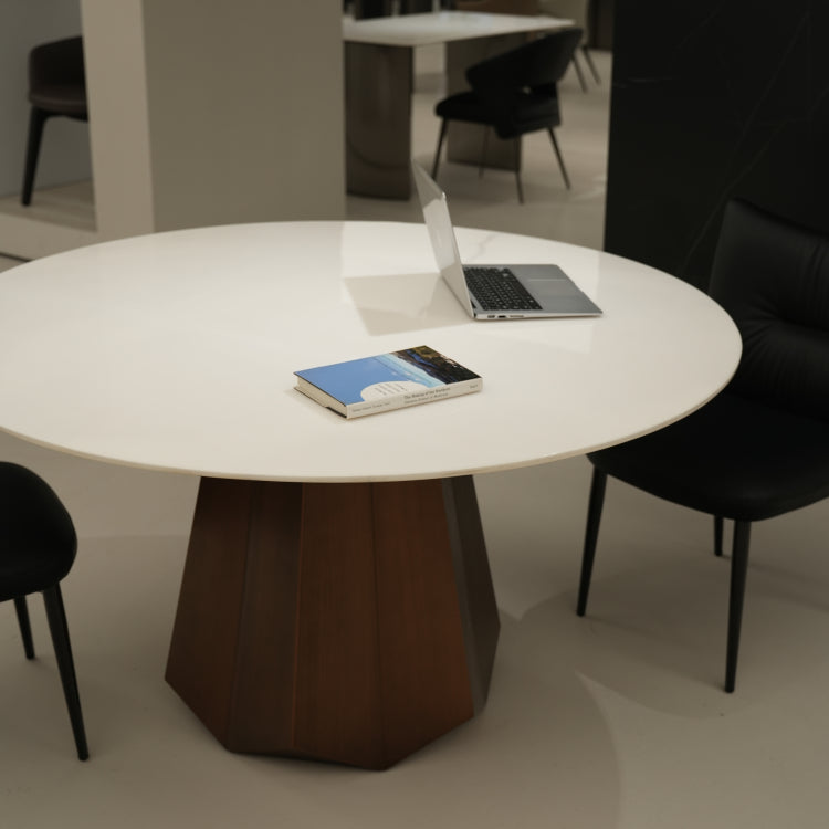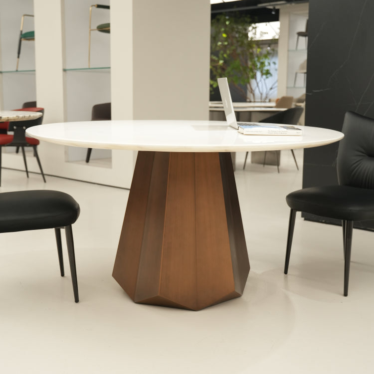 デザイナーズ 大理石ダイニングテーブル ホワイト×ウォールナット ナチュラルモダン 高級ラウンドテーブル jrjj-6503