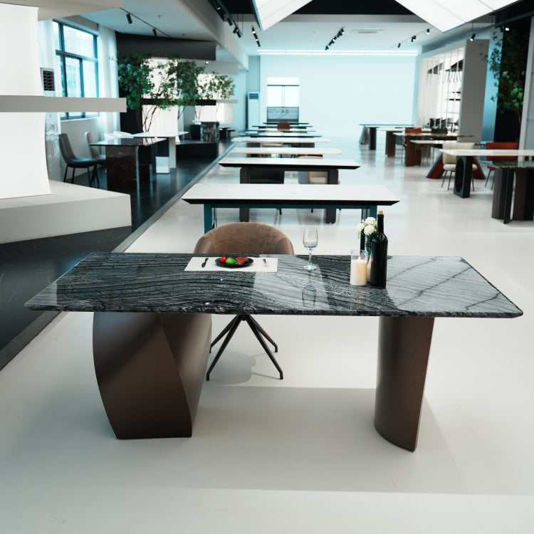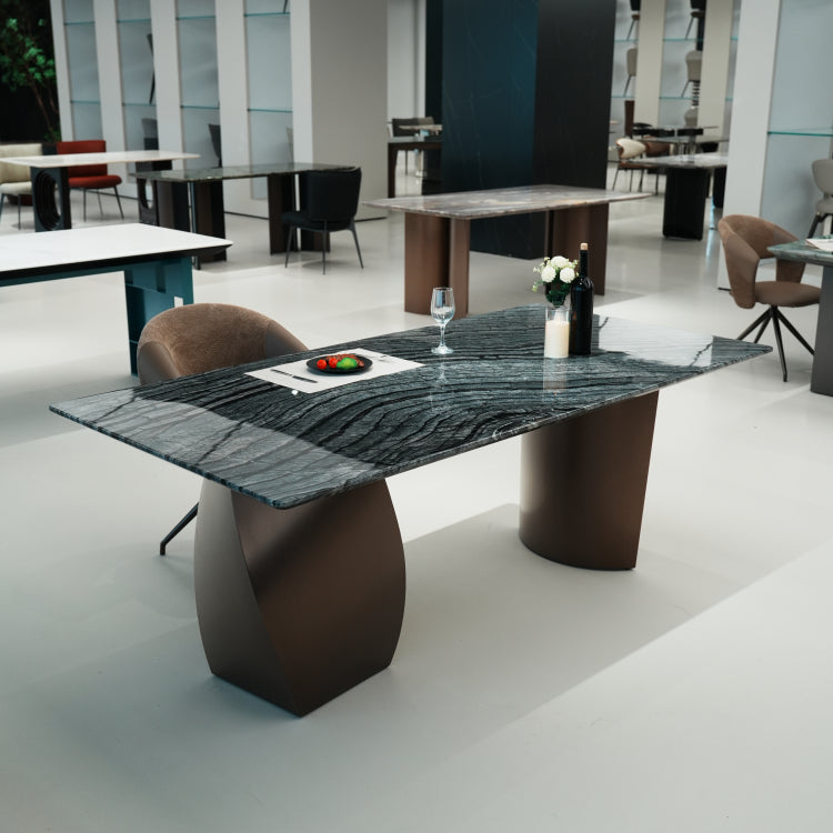 デザイナーズ 大理石ダイニングテーブル 古木紋 天然石天板 ブロンズ脚 高級モダンスタイル jrjj-6633