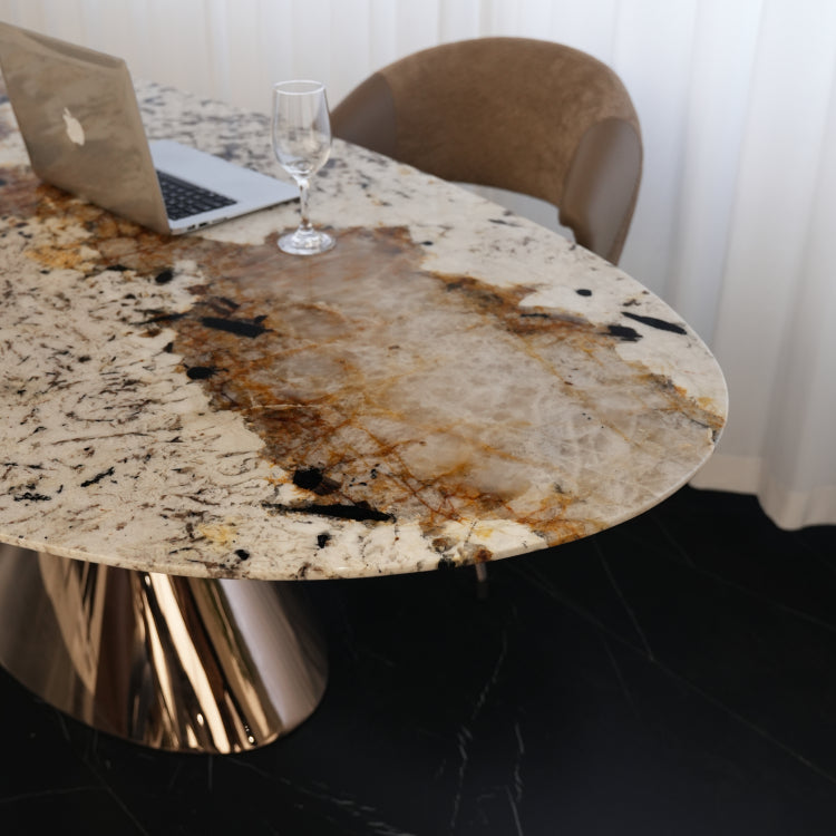 デザイナーズ 大理石ダイニングテーブル エレガントベージュ 天然石天板 高級ラグジュアリーモダン jrjj-6646