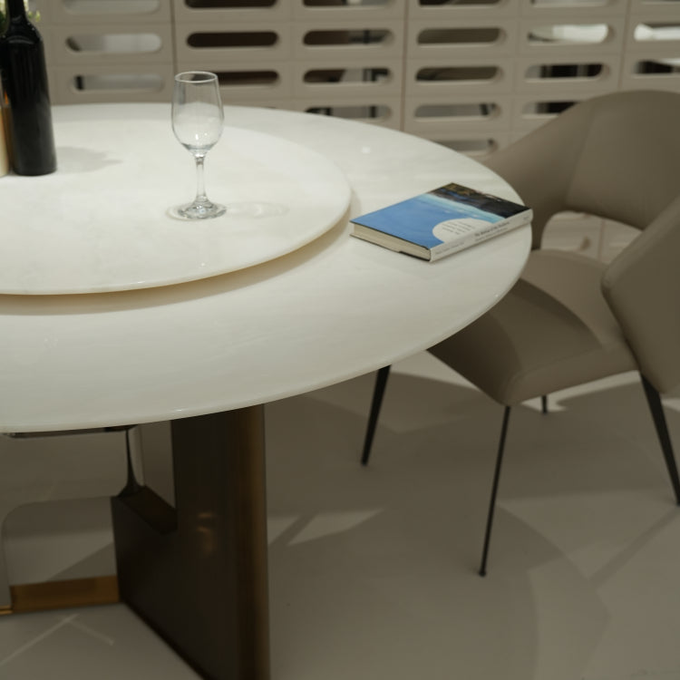 デザイナーズ 大理石ダイニングテーブル ホワイト×ゴールド 回転盤付き ラグジュアリーモダン jrjj-6768