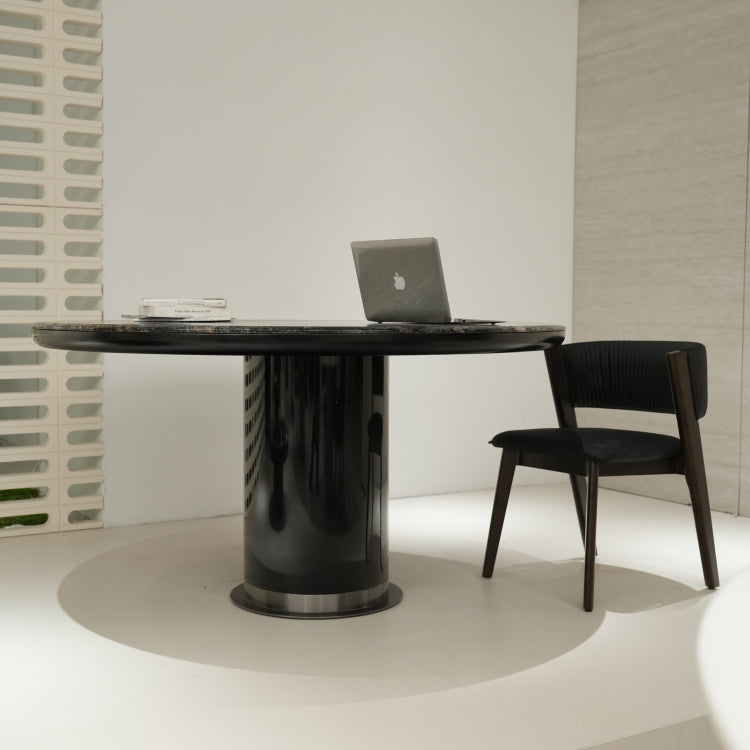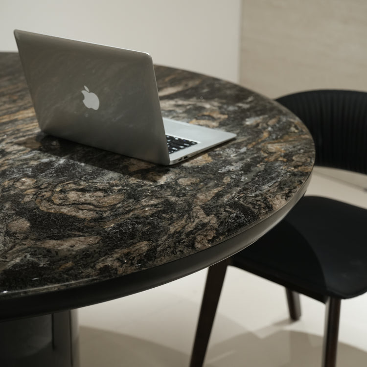 デザイナーズ 大理石ダイニングテーブル ブラック×ブロンズ 天然石天板 円形ラグジュアリー モダンテーブル jrjj-6806