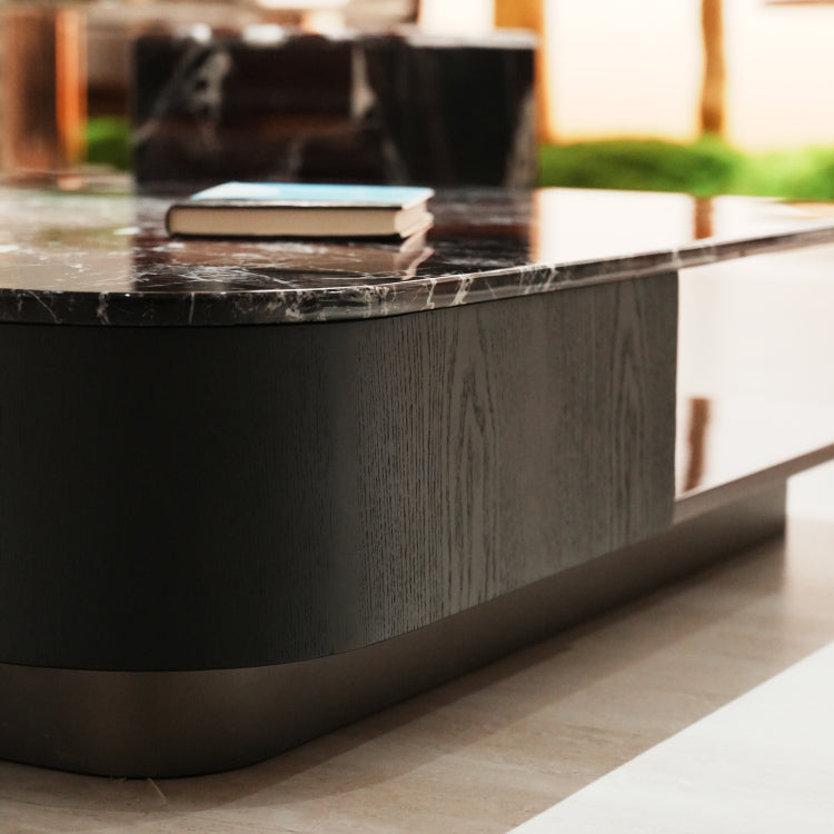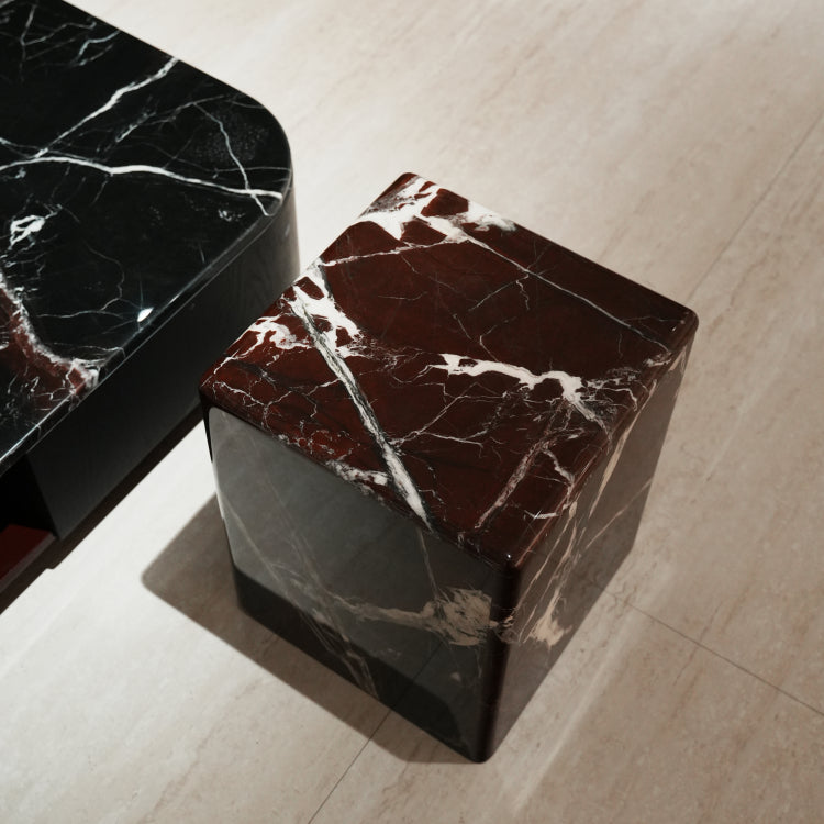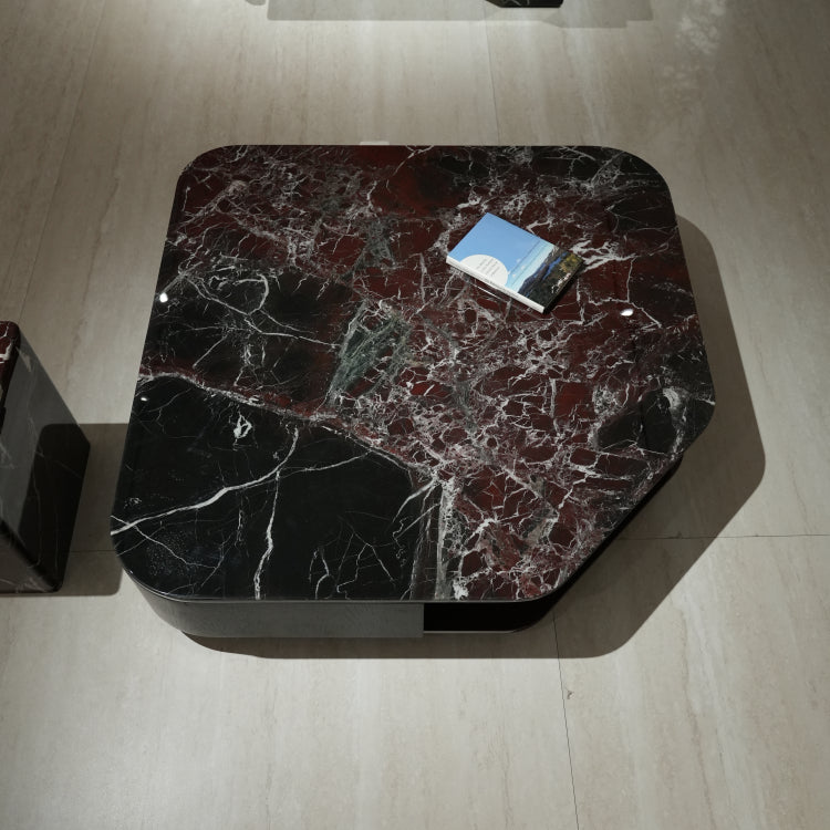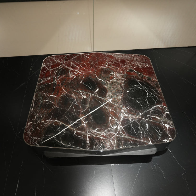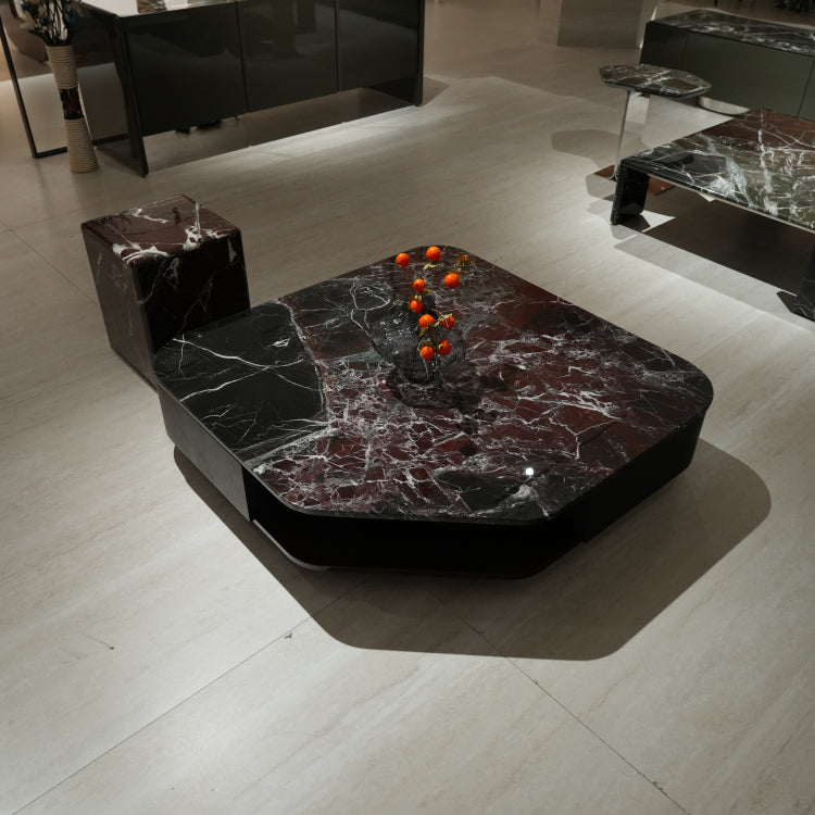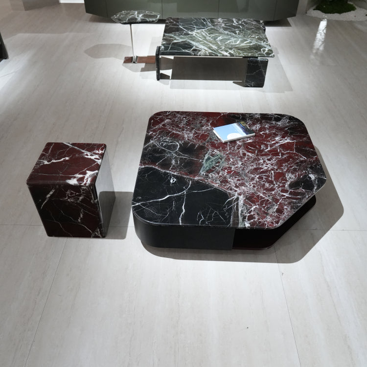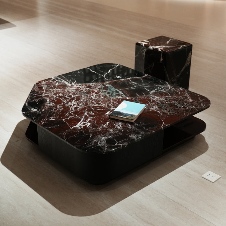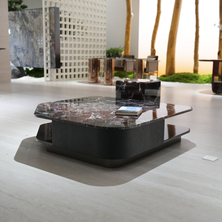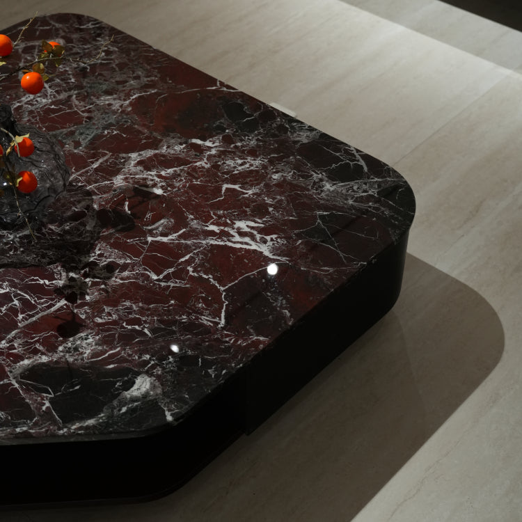 デザイナーズ 大理石センターテーブル ダークレッド×ブラック 高級ラグジュアリー リビングテーブル jrjj-8555