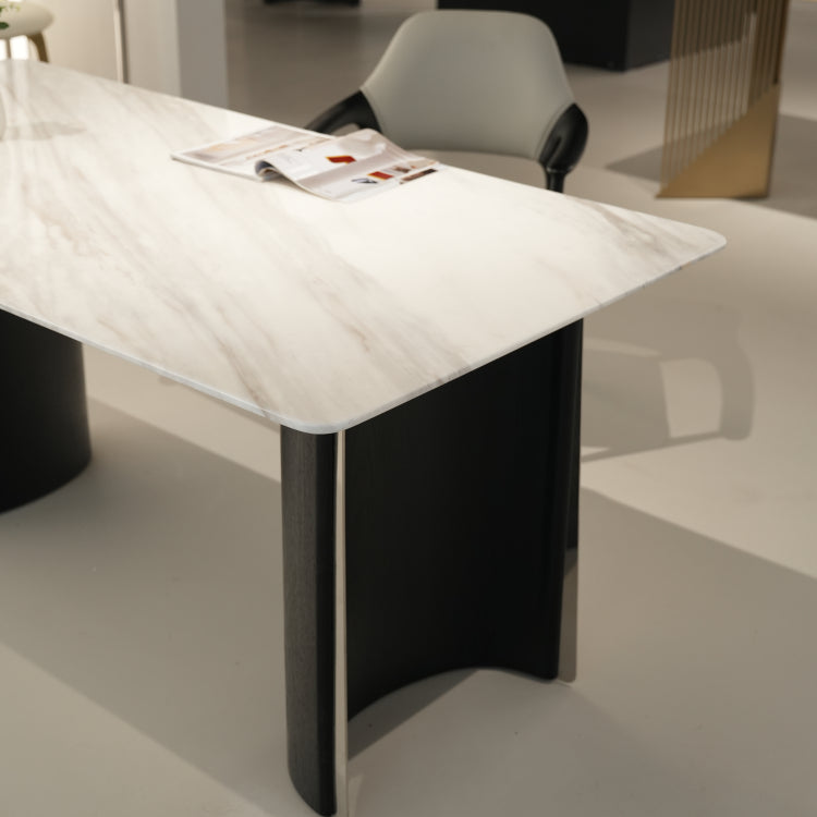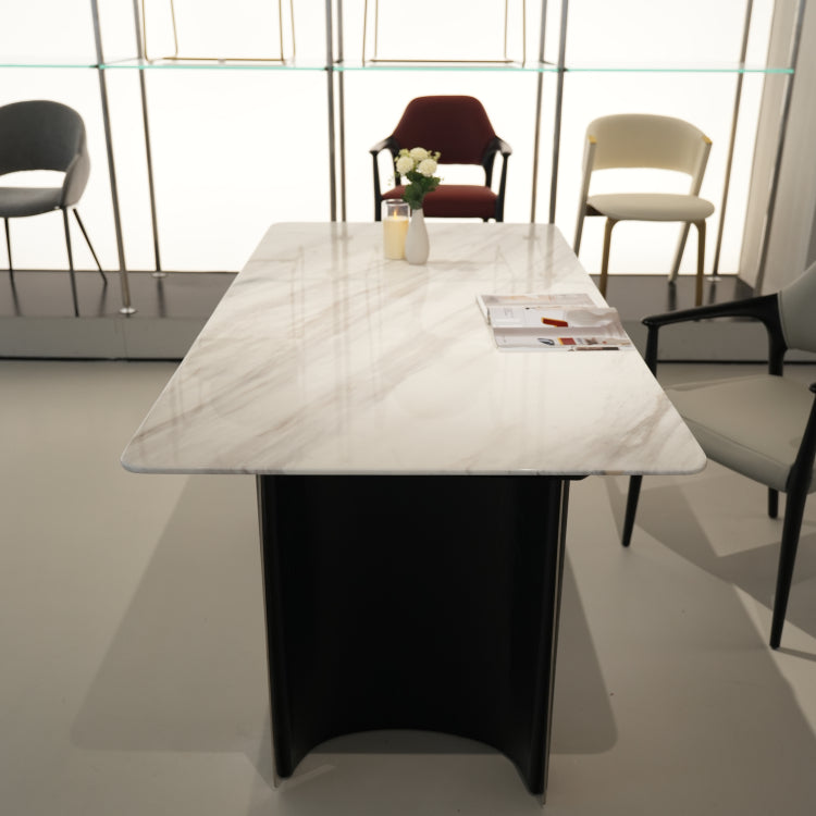 デザイナーズ 大理石ダイニングテーブル ホワイト×ブラック 脚付き 高級モダン リビング・オフィス兼用 jrjj-A05