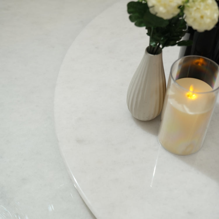 デザイナーズ 大理石ダイニングテーブル ホワイト×ブラック 高級ラグジュアリー 円形テーブル 回転盤付き jrjj-A30