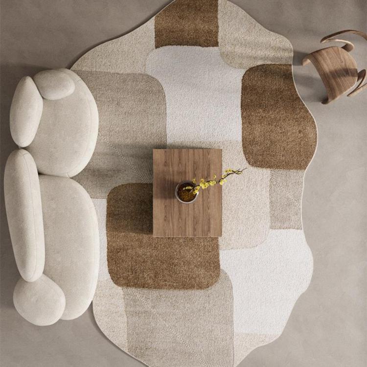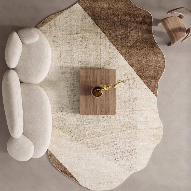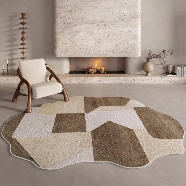 ヴィンテージ風 不規則ラグ 変形ラグマット リビング ソファ前 カーペット 寝室 ブラウン系 おしゃれ ky-09