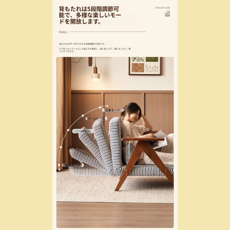 無垢材 ソファーベッド 2WAY 折りたたみ式|幅120cm 1人用 書斎向け デザイン家具 sjdd-0225-3