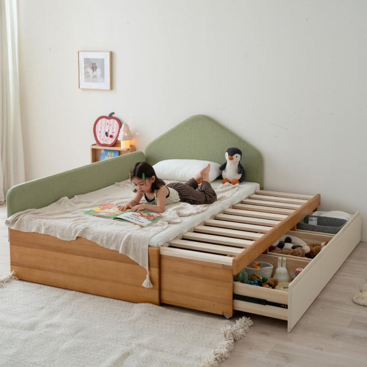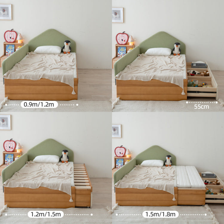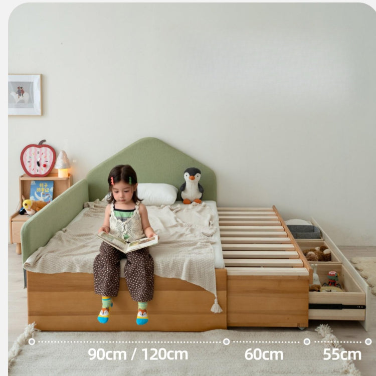 伸縮式キッズベッド 天然木無垢材 幅調整可能 収納引き出し付き tsh-112-17